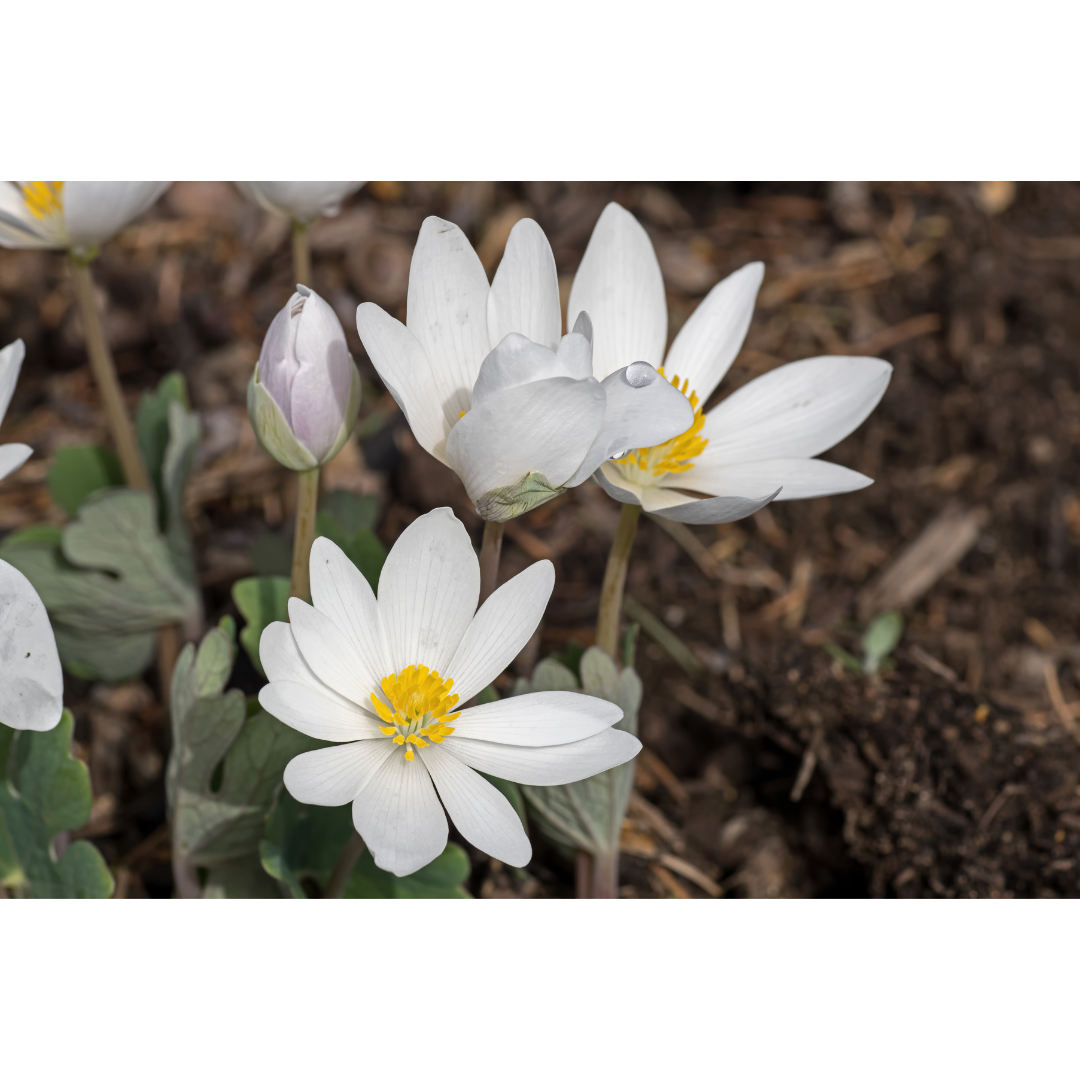 Bloodroot (Sanguinaria canadensis) is a native wildflower named for the orange-red juice found in the underground stem. This juice was used by Native Americans for dye, paint, and insect repellent.