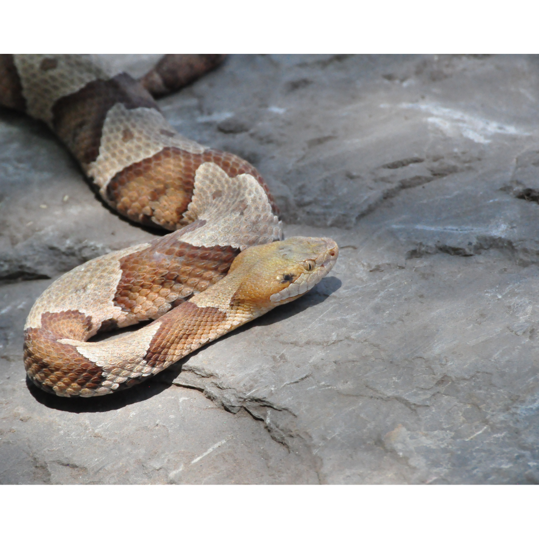 Timber Rattlesnakes live in Western Maryland and do not occur in the Patapsco Valley. Eastern Copperheads are the only venomous snake that can be found in the Patapsco Valley region. Copperheads can be identified by dark brown Hershey-kiss-shaped markings along their body. They have a coppery color, which can make them difficult to see on the forest floor.