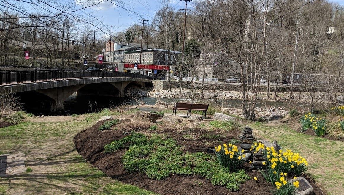 The Oella Entrance Garden started in 2008 to honor the bicentennial of the historic mill town of Oella, which is located just across the Patapsco River from Ellicott City.