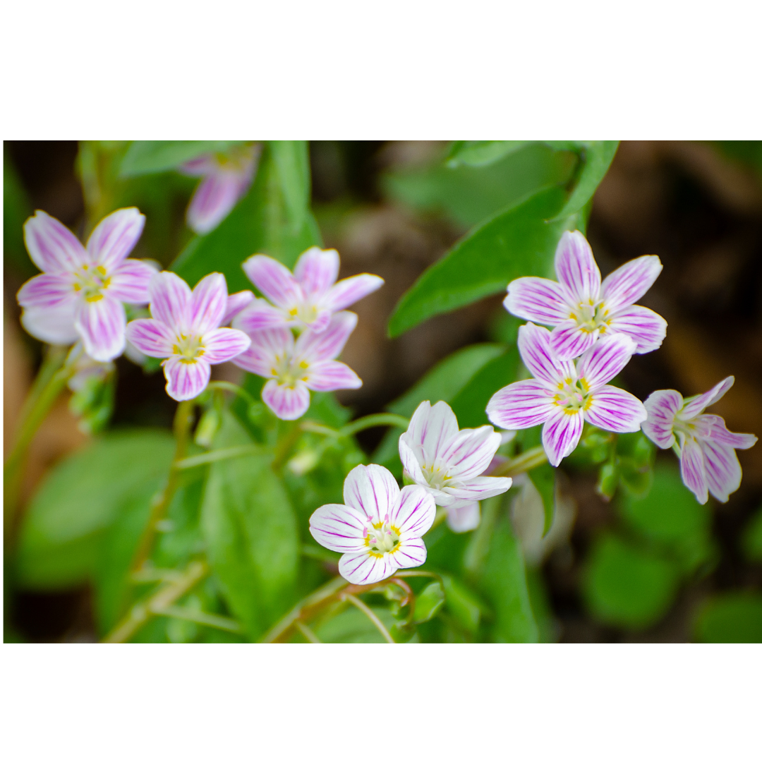 The Spring Beauty (Claytonia virginica) has a small flower with pink stripes and grows only 4-6 inches tall. The flower is in bloom from late March until June when it dies back.