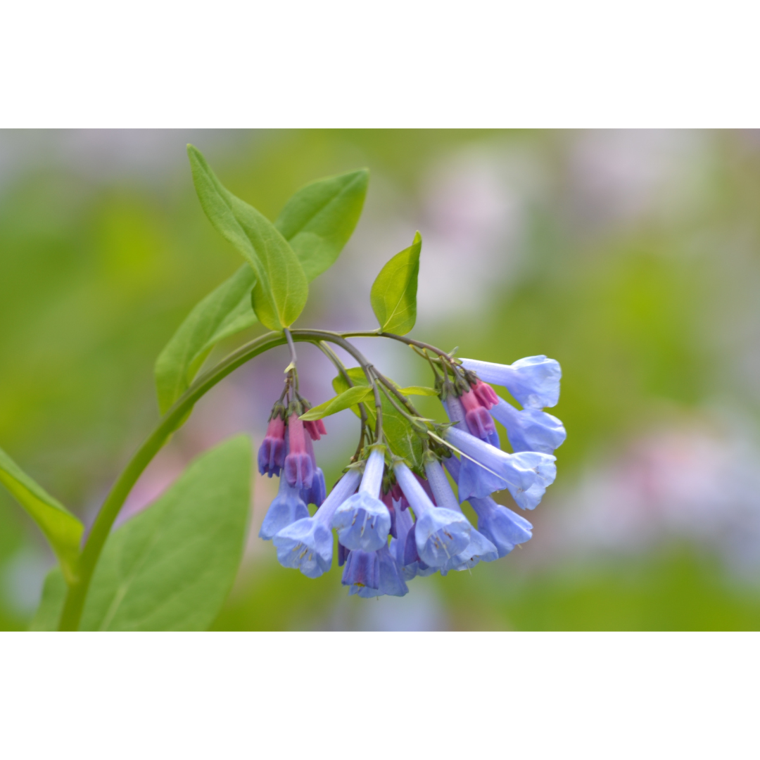 The Virginia Bluebell (Mertensia virginica) is a native wildflower known for its lavender-blue and bell-shaped flowers.